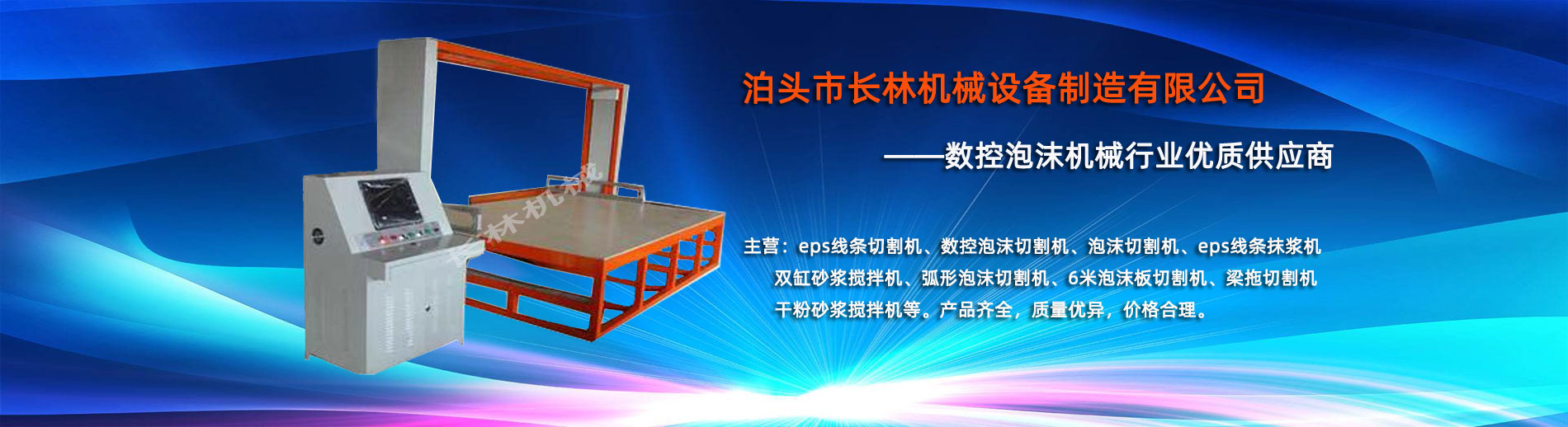泊頭市長(zhǎng)林機(jī)械設(shè)備制造有限公司座落于河北省泊頭市開發(fā)(fā)區(qū)(qū),地處北京、天津、濟(jì)南、石家莊中心位置。京滬高速、京滬鐵路、106國道、104國道穿行于本市,交通便利。 本公司是集多功能數(shù)(shù)控泡沫切割機(jī)的自主研發(fā)(fā)、生產(chǎn)(chǎn)、銷售和服務(wù)于一體的企業(yè)(yè),eps線條設(shè)備,數(shù)(shù)控泡沫切割機(jī),發(fā)(fā)泡陶瓷切割機(jī),eps線條切割機(jī)銷往全國各地,并開辟了國際合作的廣闊渠道。創(chuàng)(chuàng)新不斷的長(zhǎng)林?jǐn)?shù)控機(jī)械有限公司經(jīng)(jīng)過幾年的不斷研究,完善了建筑裝飾構(gòu)(gòu)件的配套設(shè)備和自動(dòng)化設(shè)備,由過去手工生產(chǎn)(chǎn)到半自動(dòng)生產(chǎn)(chǎn)發(fā)(fā)展到現(xiàn)(xiàn)在的CNC控制的全自動(dòng)零誤差數(shù)(shù)控泡沫切割機(jī)床。不但讓客戶在交貨期上面爭(zhēng)取了時(shí)間而且···